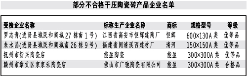 本報訊記者龔漢斌報道:近日,江西省質監(jiān)局公布了近期對干壓陶瓷磚產品進行省級產品質量監(jiān)督抽查的結果。質監(jiān)部門共抽查了51家生產企業(yè)生產的52批次產品,抽樣合格率90.4%。抽查結果表明,本次抽查的陶瓷磚其放射性核素限量指標均達到了標準規(guī)定的要求;但仍有部分產品存在一些問題。 本次抽查的5批次不合格產品中,有1批次產品的破壞強度達不到標準規(guī)定要求,兩批次產品的斷裂模數指標達不到標準規(guī)定要求。強度性能指標不達標易造成產品達不到應有的承重能力,在使用中產生開裂、破碎或表面缺陷等現象,影響產品的使用壽命和使用性能。有4批次產品的吸水率達不到標準規(guī)定要求。吸水率不達標,將影響消費者的正常使用。 對本次監(jiān)督抽查不合格的產品,省質監(jiān)局將依法嚴肅處理。